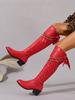 Nowy styl butów jeździeckich damskich na jesień/zimę 2025: retro metalowy łańcuch szpiczasty nosek, gruby obcas, kozaki do kolana