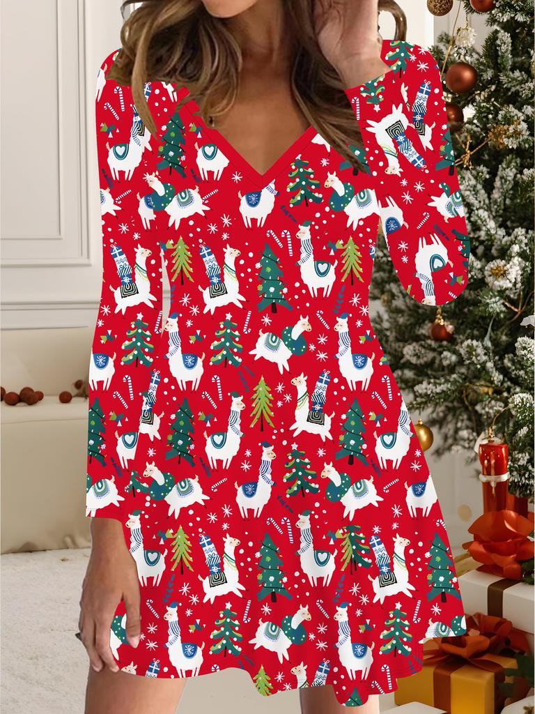 Sukienka Drukowana 3D Ekskluzywny Modny Element dla Kobiet na Jesień i Zimę Edycja Świąteczna