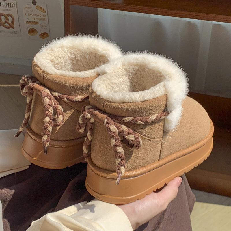 24 nowe zimowe bawełniane kapcie all-inclusive na grubej podeszwie, aksamitne śniegowce, paski z kokardami, do noszenia na zewnątrz, podwyższające, ciepłe bawełniane buty