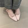 2025 Elegant Satin Butterfly Knot Head Cover Sandals Women's Pointed Toe Thick Heel One-Strap High Heels Backless Single Shoes
