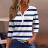 Damski T-shirt z długim rękawem, okrągłym dekoltem, zapinany na guziki, casualowy, letni, w paski