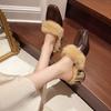 Markowe Damskie Buty na Wysokim Obcasie Lamparci Wzór Ciepłe Kapcie z Króliczego Futra Szpiczasty Nosek Luksusowe Prawdziwe Futro Kwadratowy Obcas Damskie Kapcie Outdoorowe