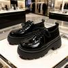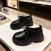 Czarne mokasyny na grubej platformie sznurowane damskie 2025 jesień nowe platformowe w stylu brytyjskim małe skórzane buty podwyższające muffin pojedyncze buty