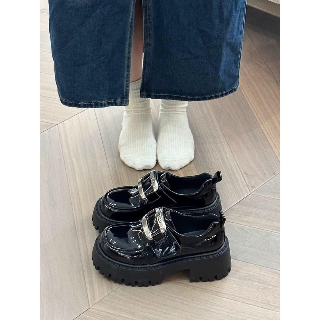 Sweet and cool little leather shoes! Small fried street quack looks good! Black patent leather British style platform Mary Jane single shoes