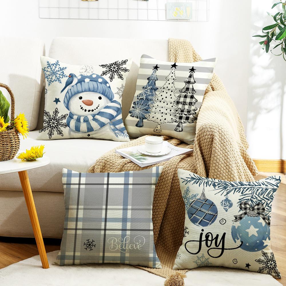Blue Little Snowman Snowflake Element Festive Warm Atmosphere Pillowcase Linen Print Pillow Bedroom Bedside Mat