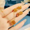 Luxury Octagonal Rose Cut Pendant Necklace Champagne Diamond Ring Green Earrings Pink Diamond Jewelry Set