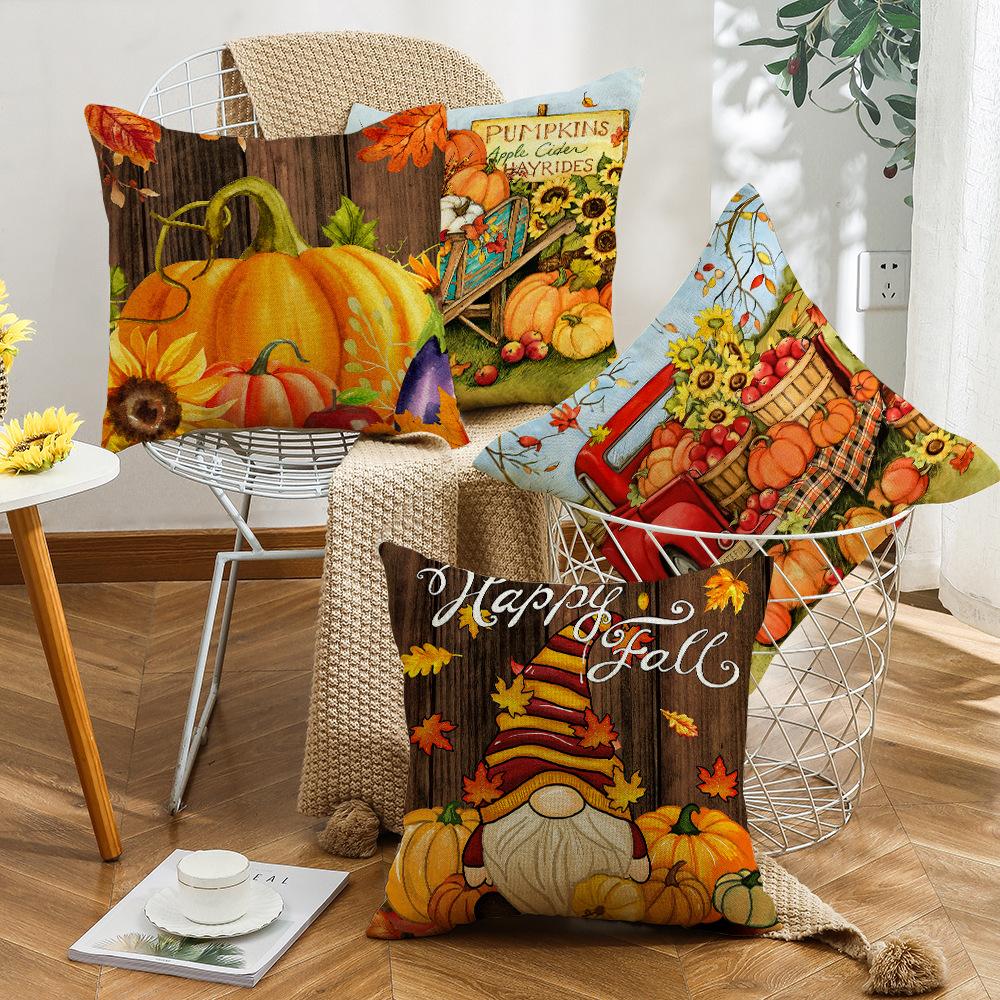 New Autumn Cushion Retro Pumpkin Gnome Farm Truck Home Cushion Pillow Cover