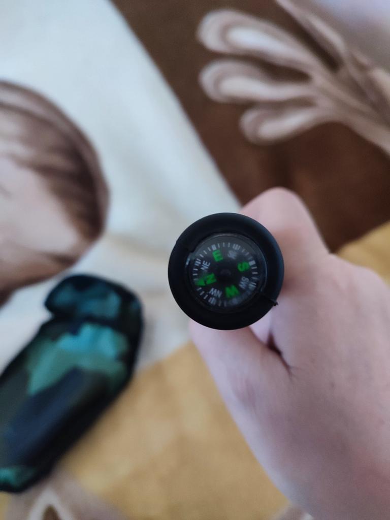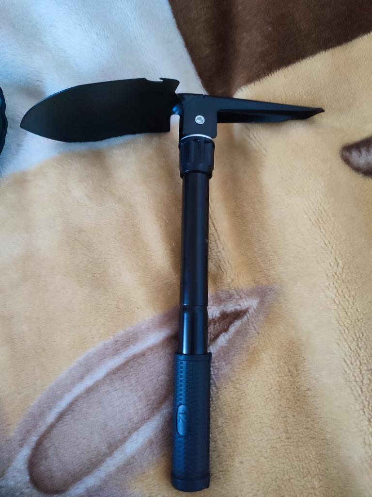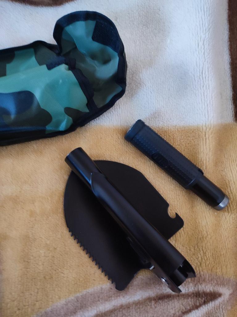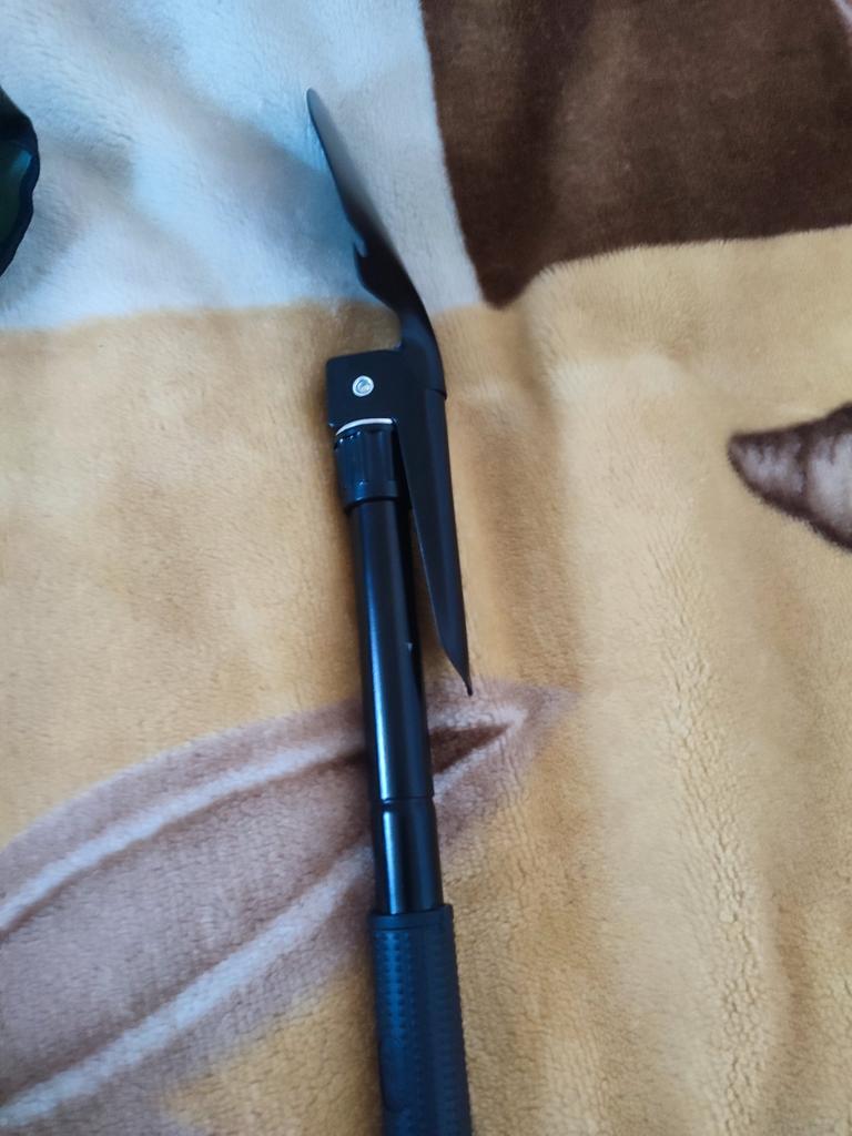 Składana łopatka z kompasem. Łatwo się rozkłada i składa. Łatwo się blokuje w różnych pozycjach.