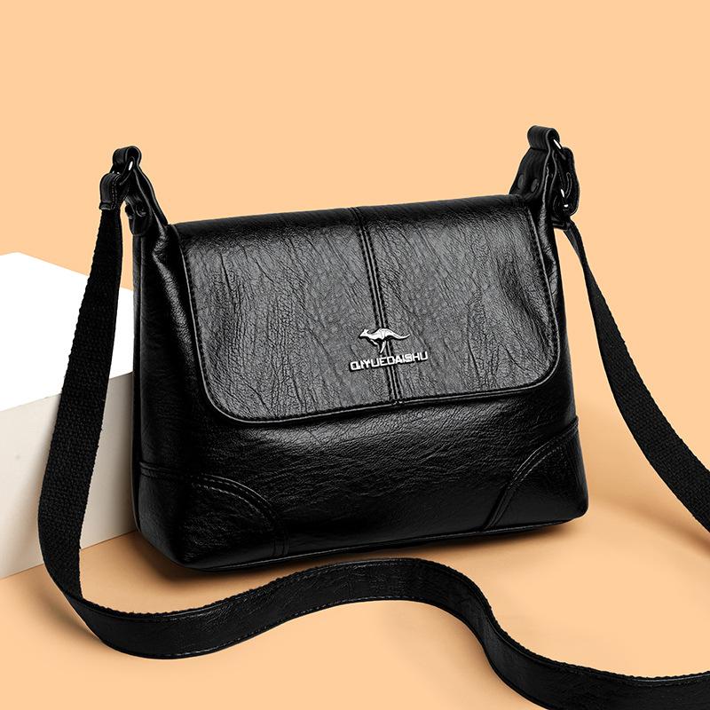 Torba z klapką, Modna i prosta, Miękka skórzana torba na ramię crossbody, Wielowarstwowa torebka o dużej pojemności