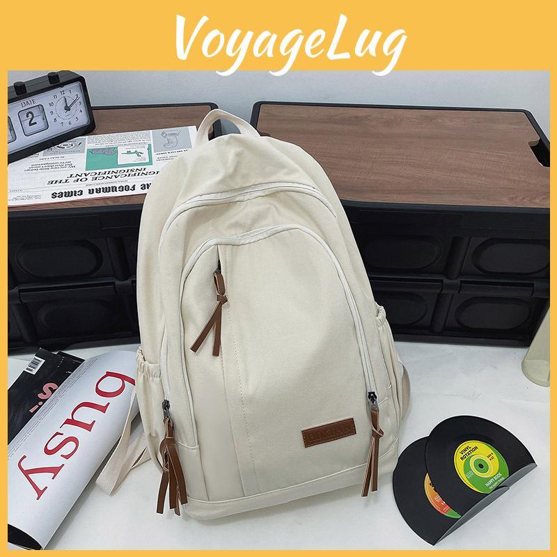 Color Simple Solid Letter Decoration Large Capacity Student Backpack For Teen