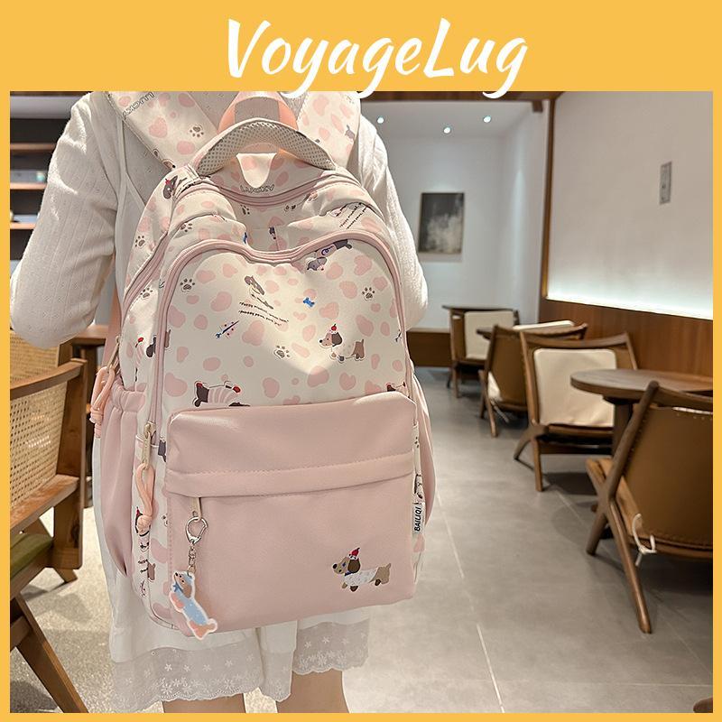 Uroczy plecak studencki z nadrukiem kreskówkowym jamnika i zawieszką do szkoły