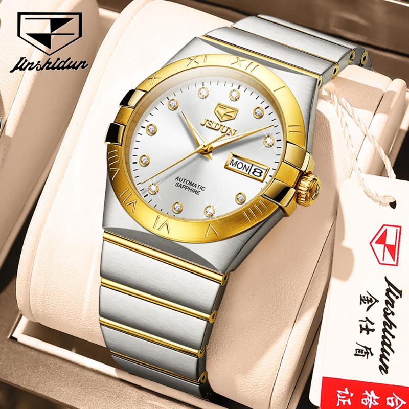 JINSHIDUN Nowy zegarek męski biznesowy i rekreacyjny W pełni automatyczny zegarek maszynowy Biznesowy wodoodporny zegarek wysokiej klasy