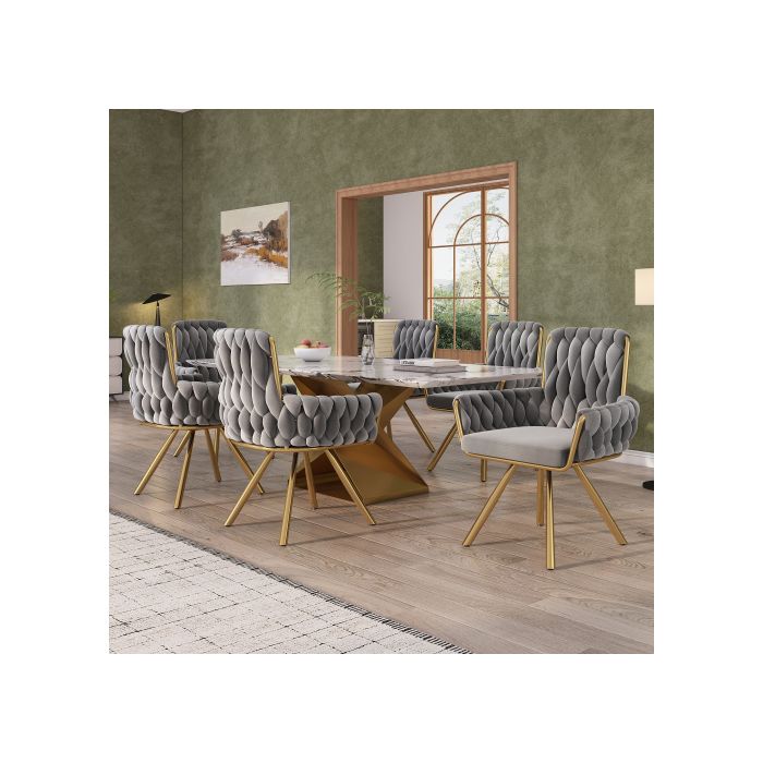 Chaises de salle à manger - MUVOE - Lot de 6 - Velours gris - Design moderne - Rotation 360°
