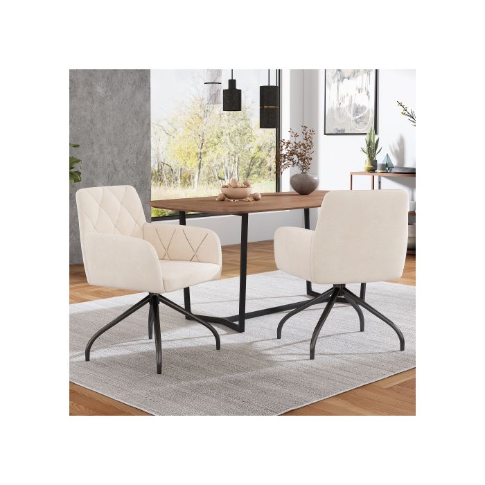 Chaises de salle à manger - MUVOE - Lot de 2 - Pivotantes 360° - Velours beige - Pieds métalliques
