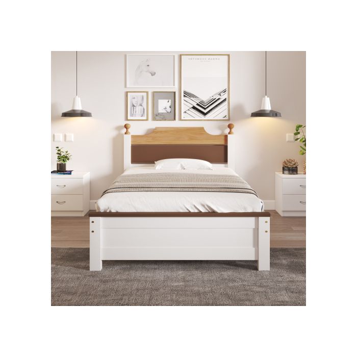 Lit simple - MUVOE - 90x200 cm - Bois massif - Couleur blanc - Design contemporain
