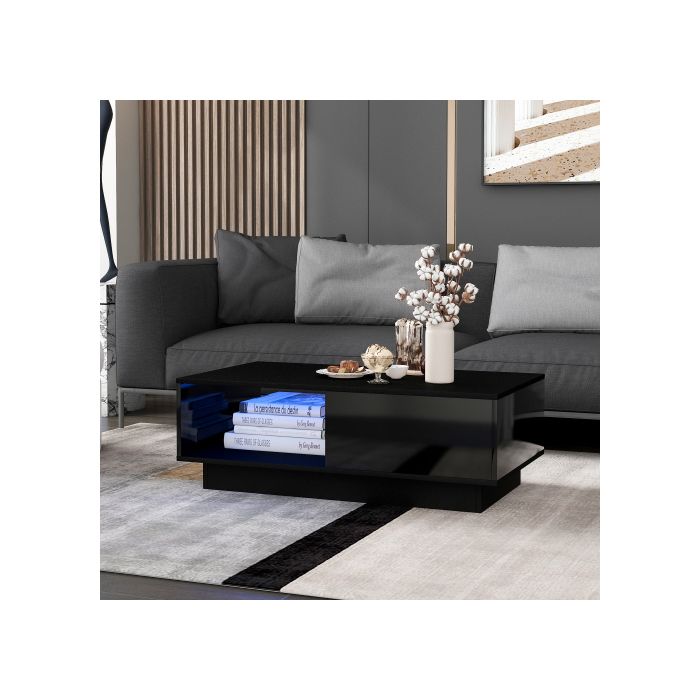 Table basse - MUVOE - Rectangulaire blanche - Éclairage LED - 15 couleurs - 95 x 55 x 32 cm