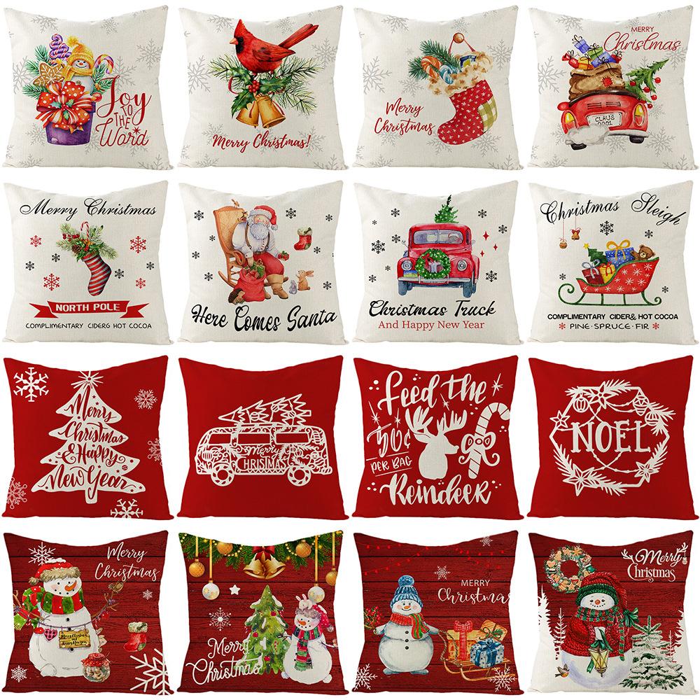 Watercolor Red Christmas Pillow Cover Polyester Printed Holiday Pillow Cartoon Pillow Cover
