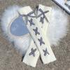 Zimowe białe pomponowe kokardki Lolita dziergane ocieplacze na nogi dla kobiet
