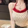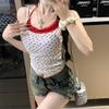 Dwuczęściowa damska koszulka na ramiączkach z kwiatowym wzorem i imitacją halter – modna, słodko-pikantna, dopasowana bluzka