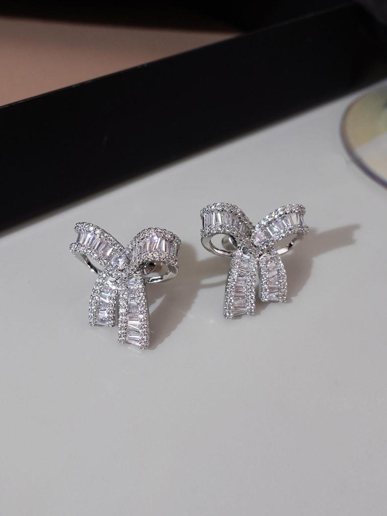 Wykwintne kolczyki sztyfty z diamentowym kokardką - Gorący styl dla kobiet, Słodka i Cool Moda