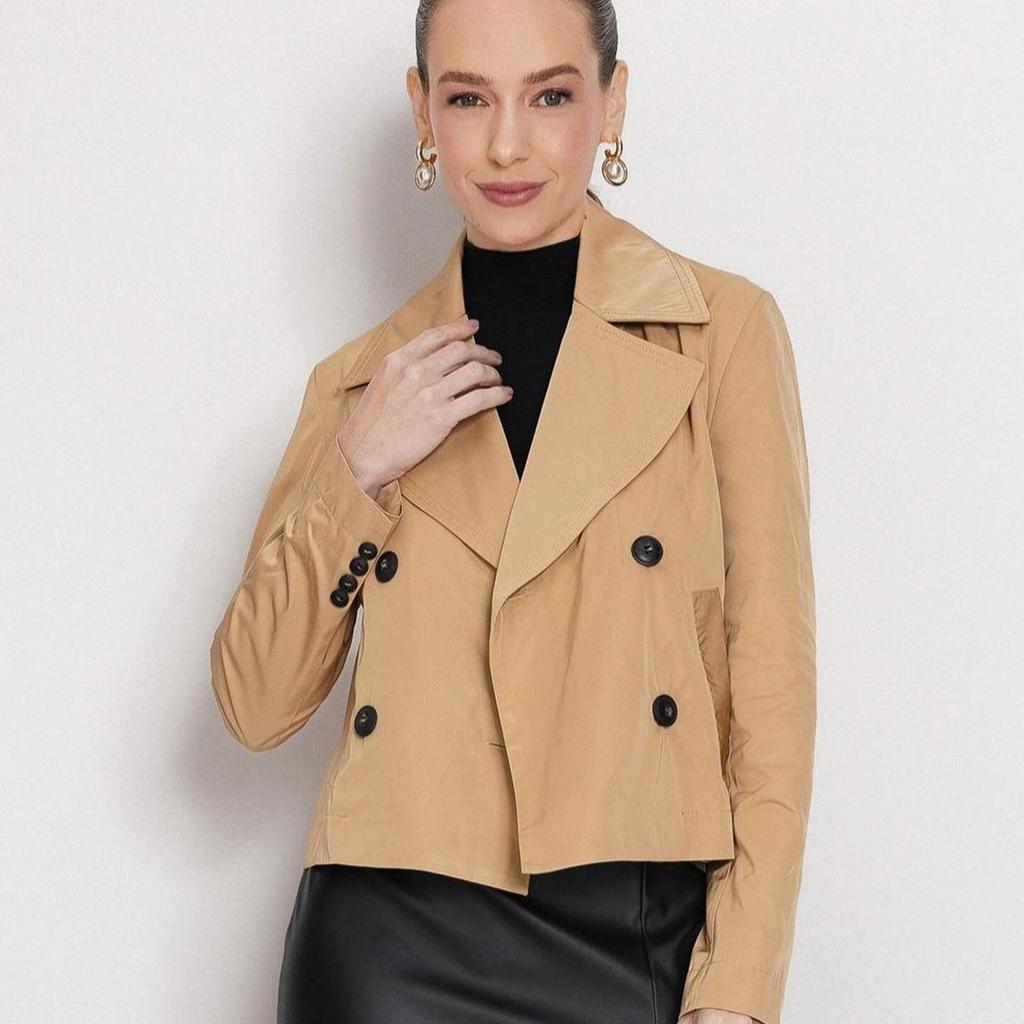 Jesień 2024 Damski Europejski i Amerykański Jednolity Kolor Wyszczuplający Krótki Trencz z Klapami