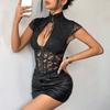 Top z fiszbinami z kwiatowej koronki o kroju slim fit - Seksowna koszula z długim rękawem