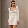 Letnia Damska Sukienka Wieczorowa A-Line z Długim Rękawem i Kwadratowym Dekoltem z Cyrkoniami