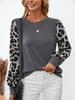 Damski T-shirt z długim rękawem, okrągłym dekoltem i patchworkiem w panterkę, jesień/zima 2024