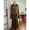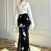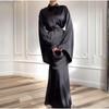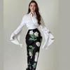 2025 Autumn European & American Satin Shirt and Bodycon Skirt Set with Flared Sleeves and Turn-Down Collar for Women