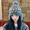 Fair Isle Style Ear protecting Knitted Hat for Women in Winter Plus Velvet and Thickened To Keep Warm Toe Cap Woolen Hat Northeastern Ski Hat Trend