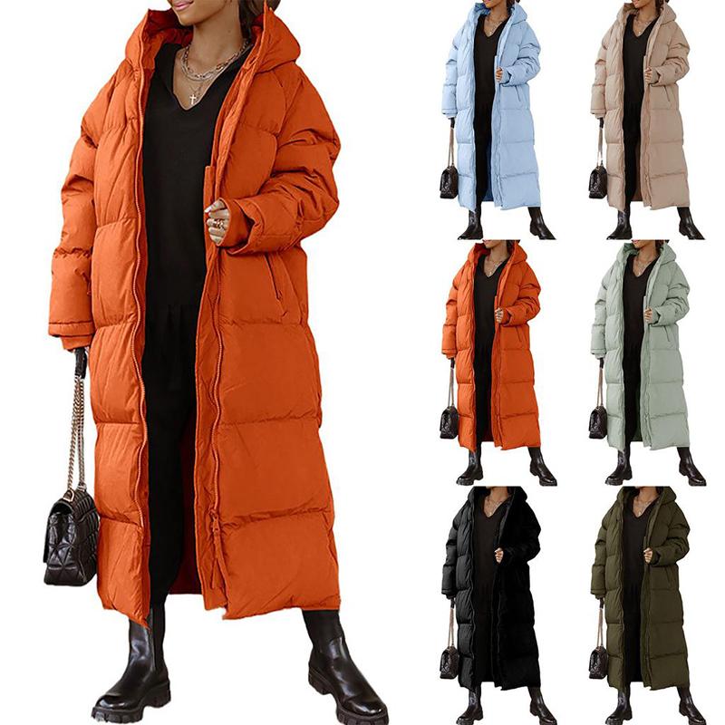 Winter Hooded Long Coat Women Elegant Pocket Long Sleeve Jacket Loose Zipper Thick Warm Outwear