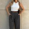 FD1541 Moda Damska: Gładkie Spodnie Garniturowe o Luźnym Kroju z Wysokim Stanem Długości 7/8 na Wiosnę i Jesień 2024