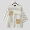 INCERUN Men Casual 3/4 Sleeve Round Neck Splits Striped Print Oversized T-Shirts Tops