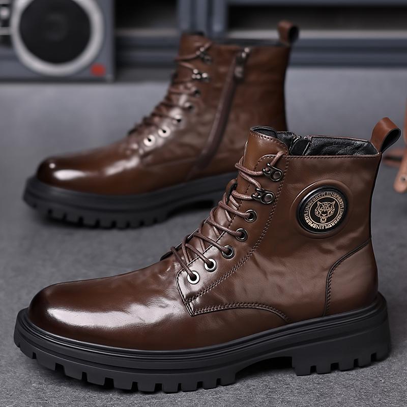 Mens High Top Leather Shoes Fashion Motorcycles Winter Warm Boots Wear Resistant Non Slip Daily Casual Boots for Man