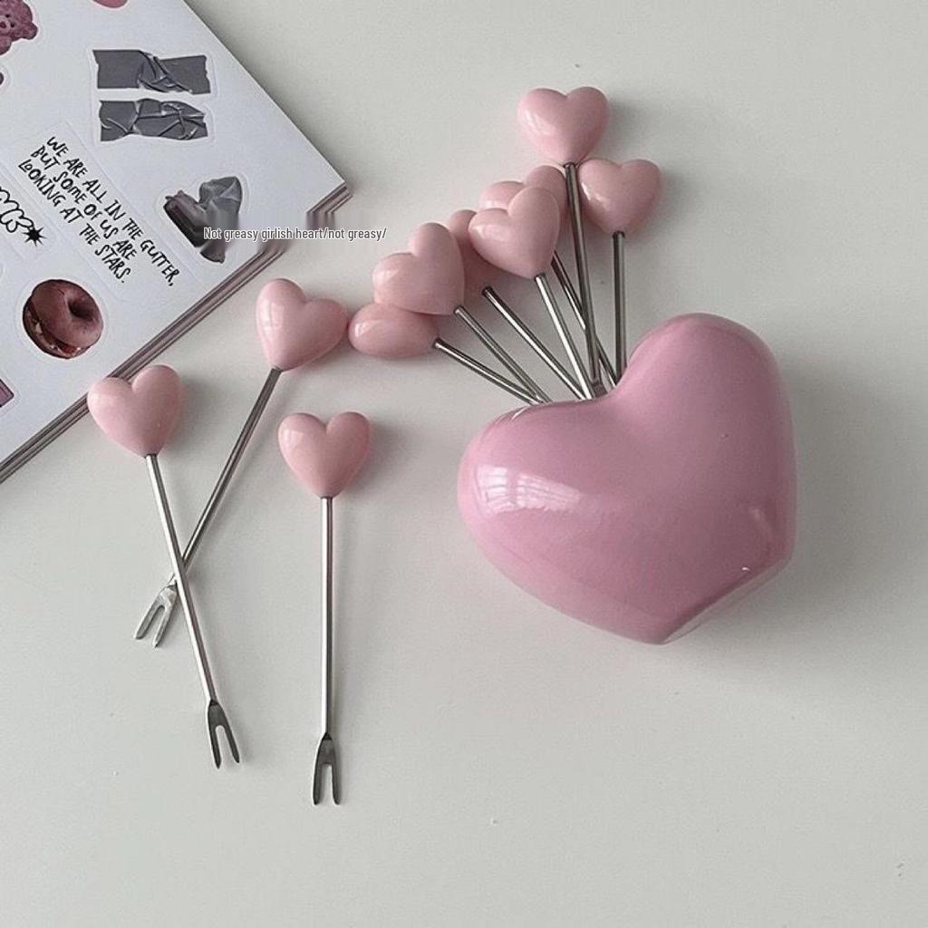 Zestaw widelczyków deserowych ze stali nierdzewnej w kształcie serca - Uroczy dwuzębny design do ciast i owoców