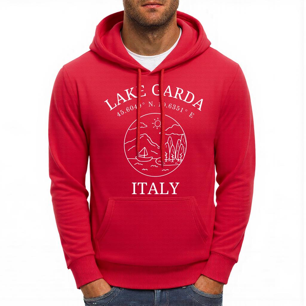 Lake Garda Italy Letter Printing Men Hoodies Fleece Casual Hoody Multicolor Loose Streetwear All-Match Pocket Man Pullovers