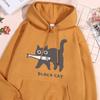 Fun A Black Cat Eating Fish Hoody Men Women Harajuku Fashion Sweatshirt Loose Oversized Streetwear Fleece Warm Couple Hoodies
