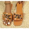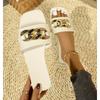 Nowe Modne Damskie Kapcie Kwadratowy Nosek Kapcie z Łańcuchem Płaskie Sandały typu Slide Klapki na Plażę Metalowa Dekoracja Buty Codzienne