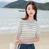 Women's Plus Size Striped Hollow-Out Knit Short Sleeve Top