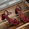 Women's High Heel Sandals Silver 2025 Summer French Style Dress Sandals Red Non Tiring Sandals Women's Shoes