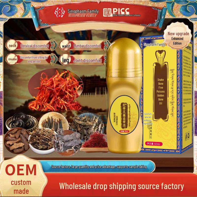 Snake Bone Five Poisons Golden Oil Massage Roll-on for Neck, Shoulder, Waist, and Joint Pain Relief - Heating Moxibustion Liquid.