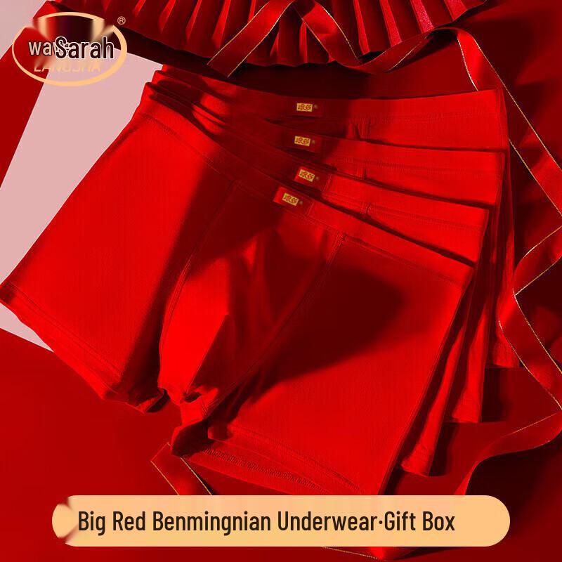 Langsha Men's Pure Cotton Red Boxer Briefs - 4 Pack
