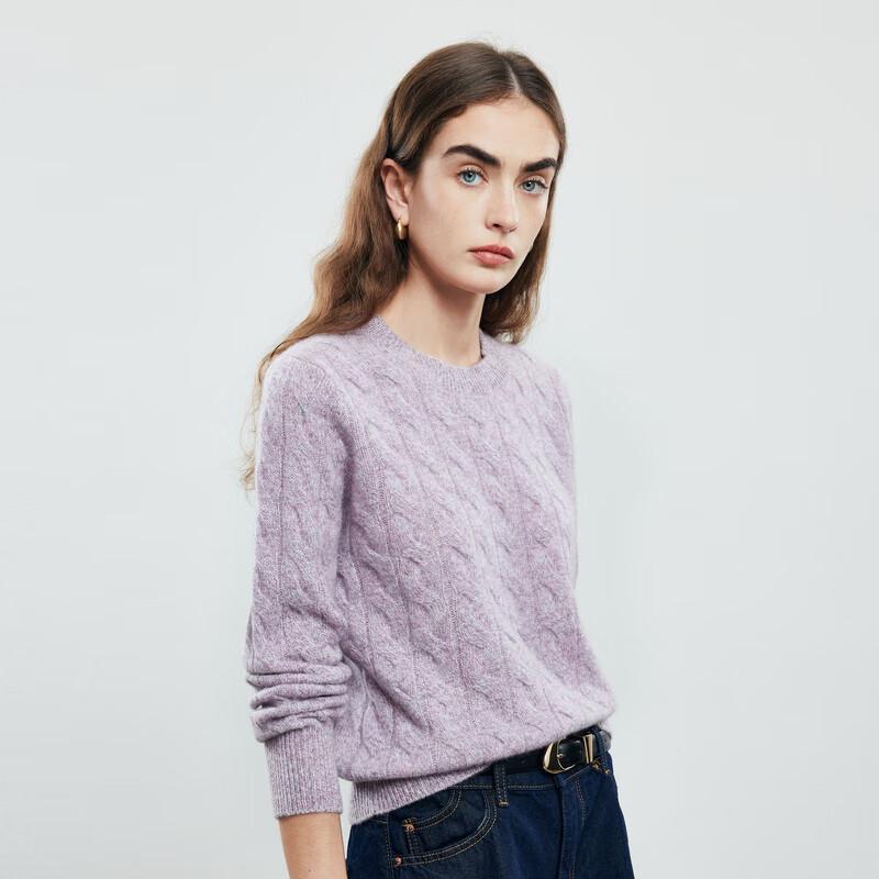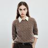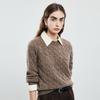 PALUOPO Women's Round Neck 3D Cable Knit Cashmere Sweater
