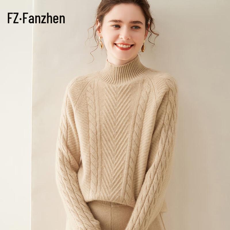 Fanzhen Damski Gruby Sweter z Mieszanki Kaszmiru z Półwysokim Dekoltem