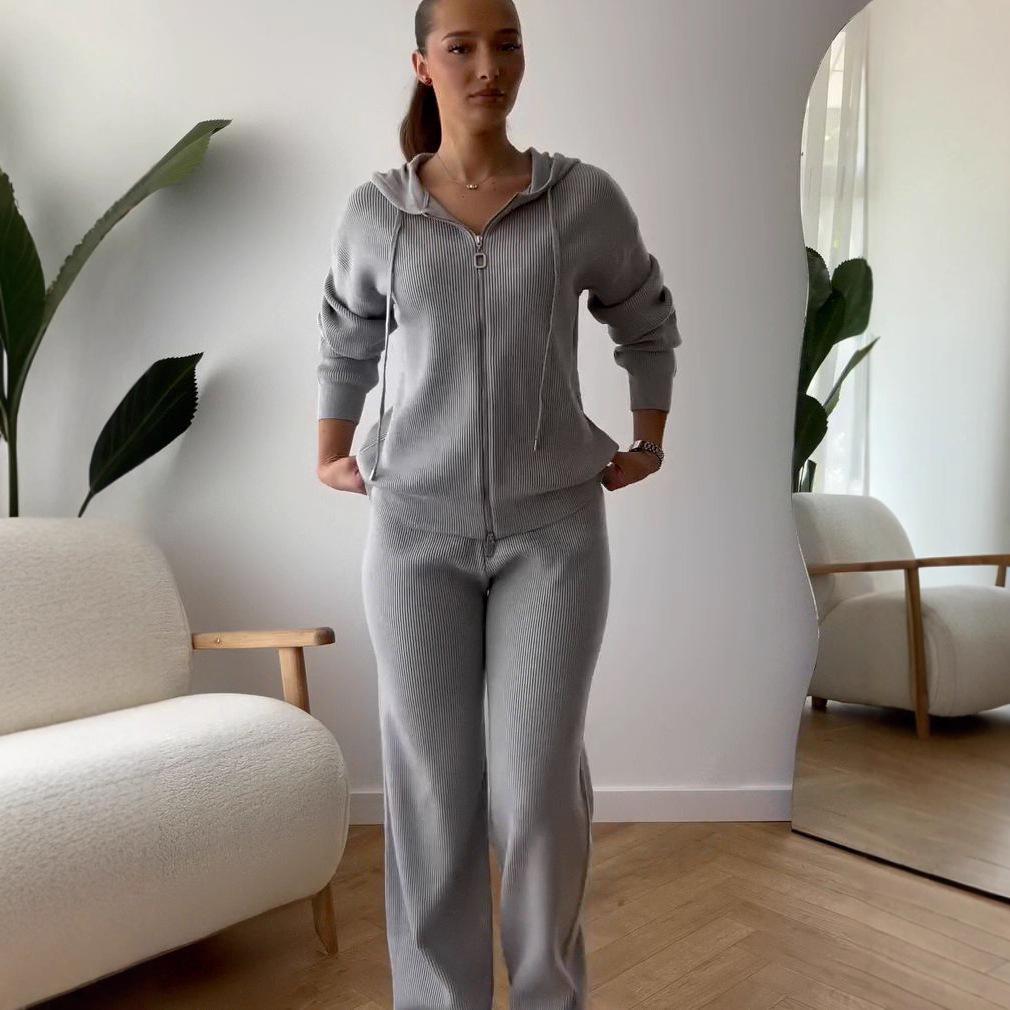 2025 Autumn European & American Women's Loose Korean Style Zipper Hoodie & Pants Two-piece Set