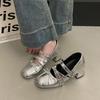 Silver inner height increase Mary Jane shoes bow flat bottom new 6cm French single shoes women's summer ballet large size women's shoes