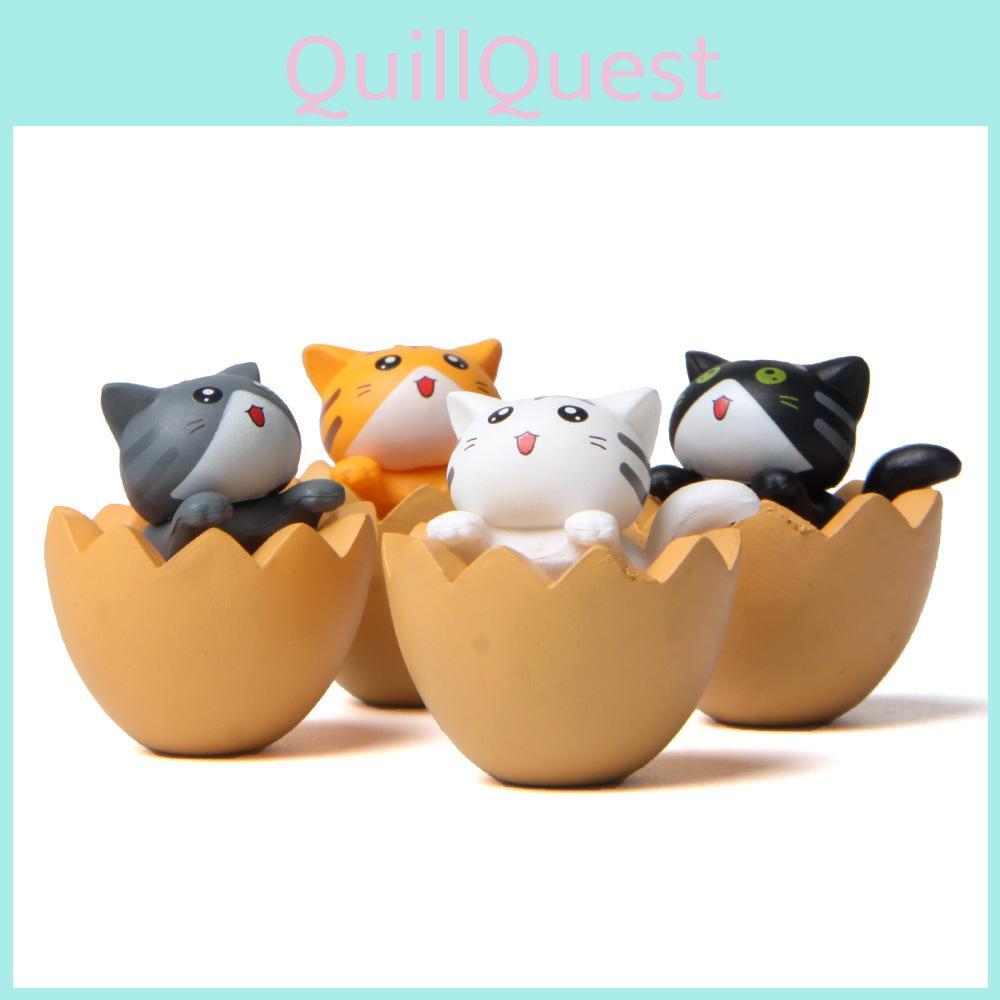 Cute Cartoon Eggshell Cat Mini Model Ornament For Landscape Decoration Prop