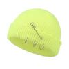 Jesienno-zimowa modna czapka z dzianej wełny w jednolitym kolorze z agrafką i żelaznym kółkiem, vintage dziurawa wełniana czapka pulower