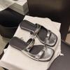 Lato 2025 temperament odzież wierzchnia niski obcas wszechstronne sandały z odkrytymi palcami moda damska kwadratowy nosek metalowa klamra palce piękne kapcie
