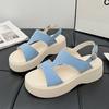 Super fire French platform bag heel sandals women's 2025 summer new two wear light luxury retro skirt comfortable beach shoes